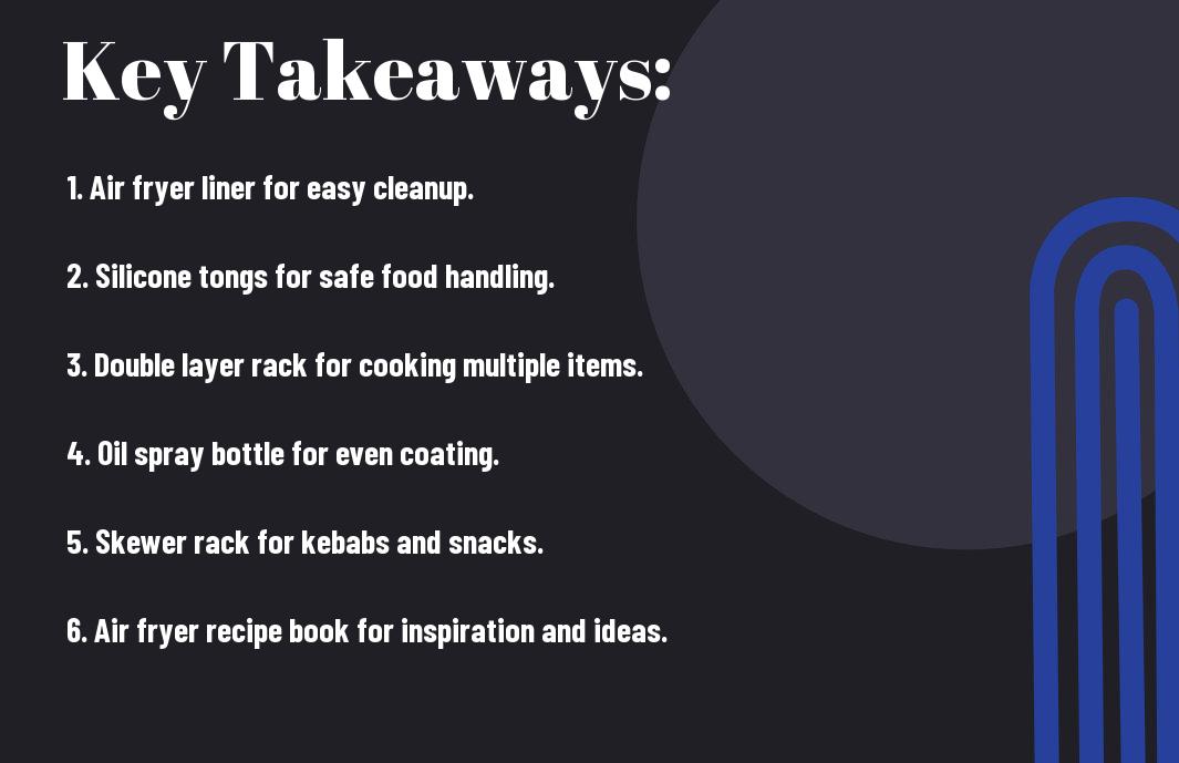 Conclusively, having the right air fryer accessories can enhance your cooking experience and open up a whole new world of possibilities in the kitchen. From silicone mats to skewer racks, these must-have accessories are designed to make your cooking more efficient, convenient, and delicious. Whether you’re a seasoned cook or just starting out, investing in these accessories will undoubtedly take your air frying game to the next level. So go ahead and equip yourself with these crucial tools to elevate your culinary creations and enjoy healthier, perfectly cooked meals with your trusty air fryer.